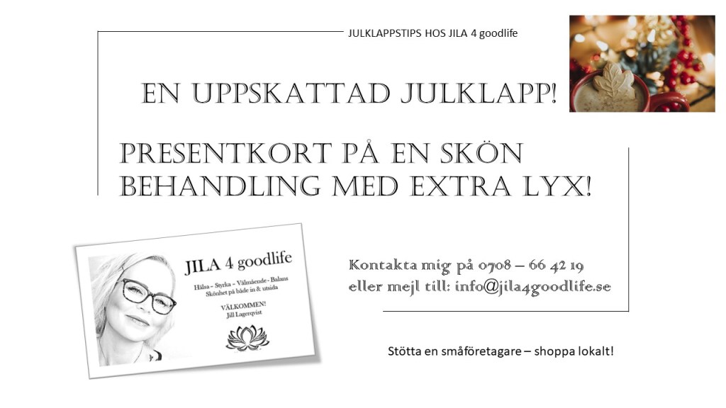 När den du vill ge en gåva redan ”har allt” så passar ett presentkort extra bra! Du ger bort en hälsosam och avkopplande julklapp i ett platt paket med stort innehåll ![]()