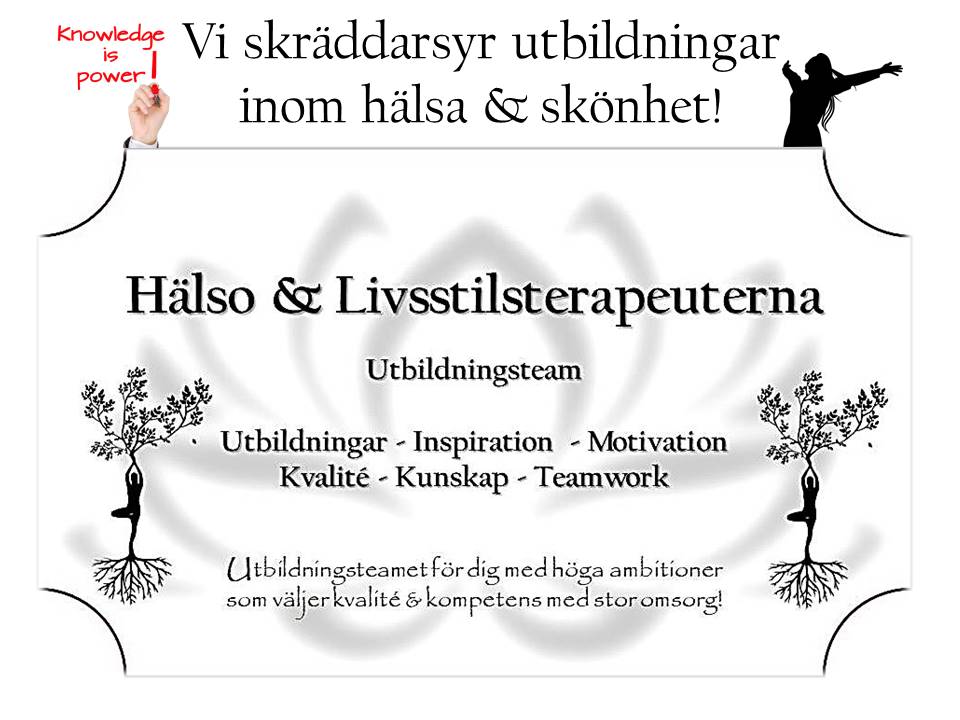 År 2020 startade vi upp Hälso & Livsstilsterapeuterna efter att ha arbetat fram ett koncept där vi har en vision att erbjuda fler terapeuter inom hälsa resultatinriktade behandlingar. Där terapeuten själv kan välja och plocka enskilda behandlingar utefter vad kunderna efterfrågar och vad som känns rätt att erbjuda. 1-2 dagars utbildningar på plats och sedan uppföljning och inträde till vårt team med en egen grupp på Facebook.