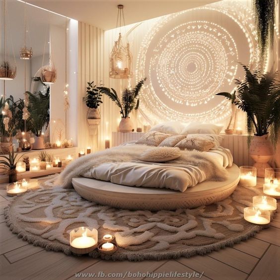 Färger? Färger gillar jag och mönster! Ibland helt crazy mönster och kanske skulle man ha en fondvägg med en galen tapet? En fondvägg med en lugn och skön grön färg? En glasvägg med skjutdörrar och utsikt över naturen och havet? Kan man bygga en veranda där och ha mjuk skön sandstrand utanför? Ett parasoll med en gosig vilstol under så jag kan ligga där och njuta? Hur möblerar jag? Traditionellt eller med en sparsmakad stil? Eller det jag gillar mest i ”Boho-stil”?! 🙂 Vid den 4:e väggen placerar jag en stor mjuk och skön säng. För vila, det vet jag att jag kommer behöva massor av!