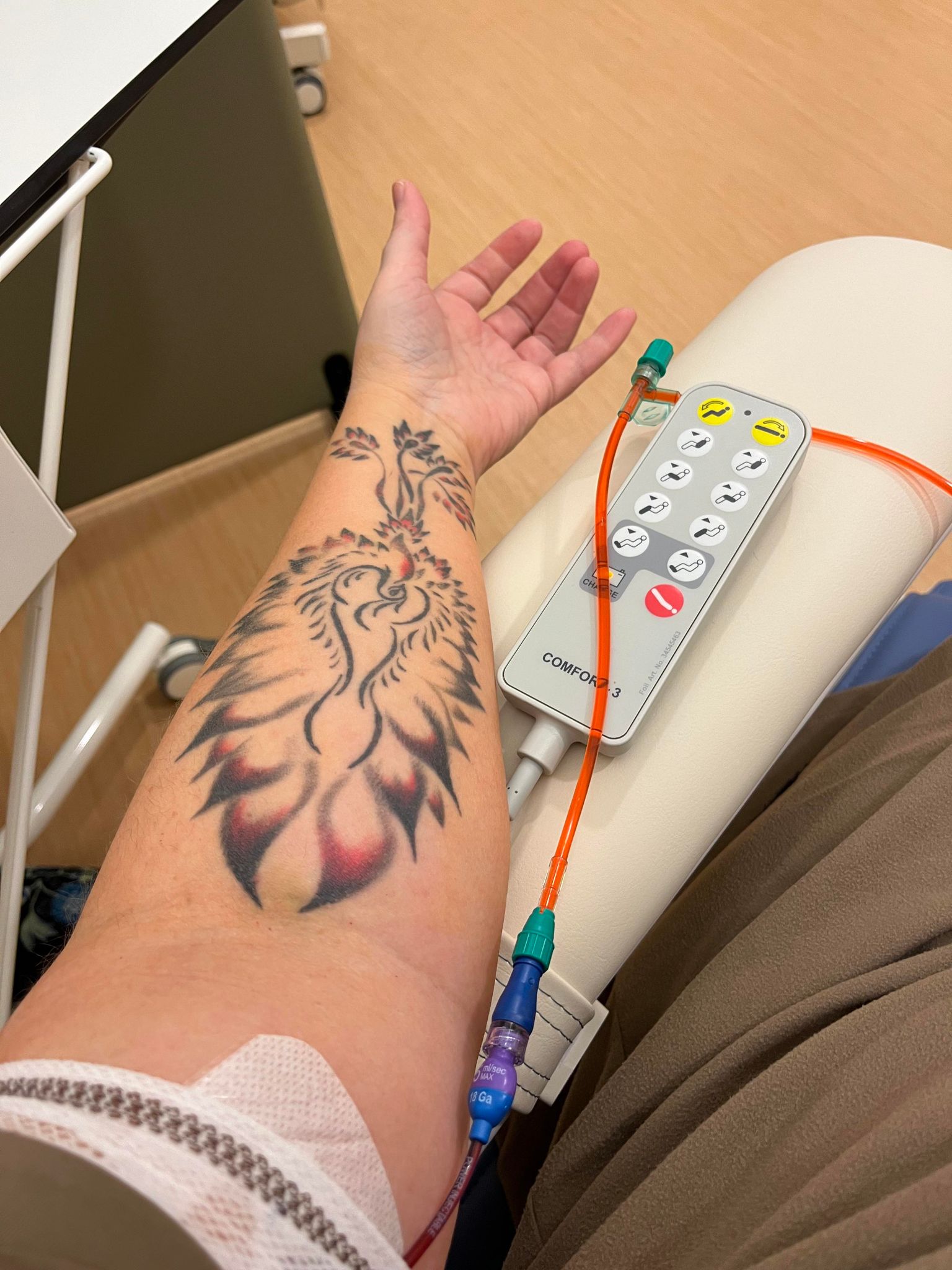 Slangarna med gift kopplades in, jag fick information och påminnelse om att när jag kissar kommer urinen att vara rödfärgad några gånger så jag inte blev orolig. Sen kom hon tillbaka med formulär att fylla i, mediciner att ta med hem för illamående och ett schema för det och en spruta jag ska ta hemma ikväll. Det där har jag svårt för, men eftersom jag är så himla priviligierad så har jag 2 vänner som är sjuksköterskor som kommer hjälpa till när de kan och jag ber dem ❤️😊