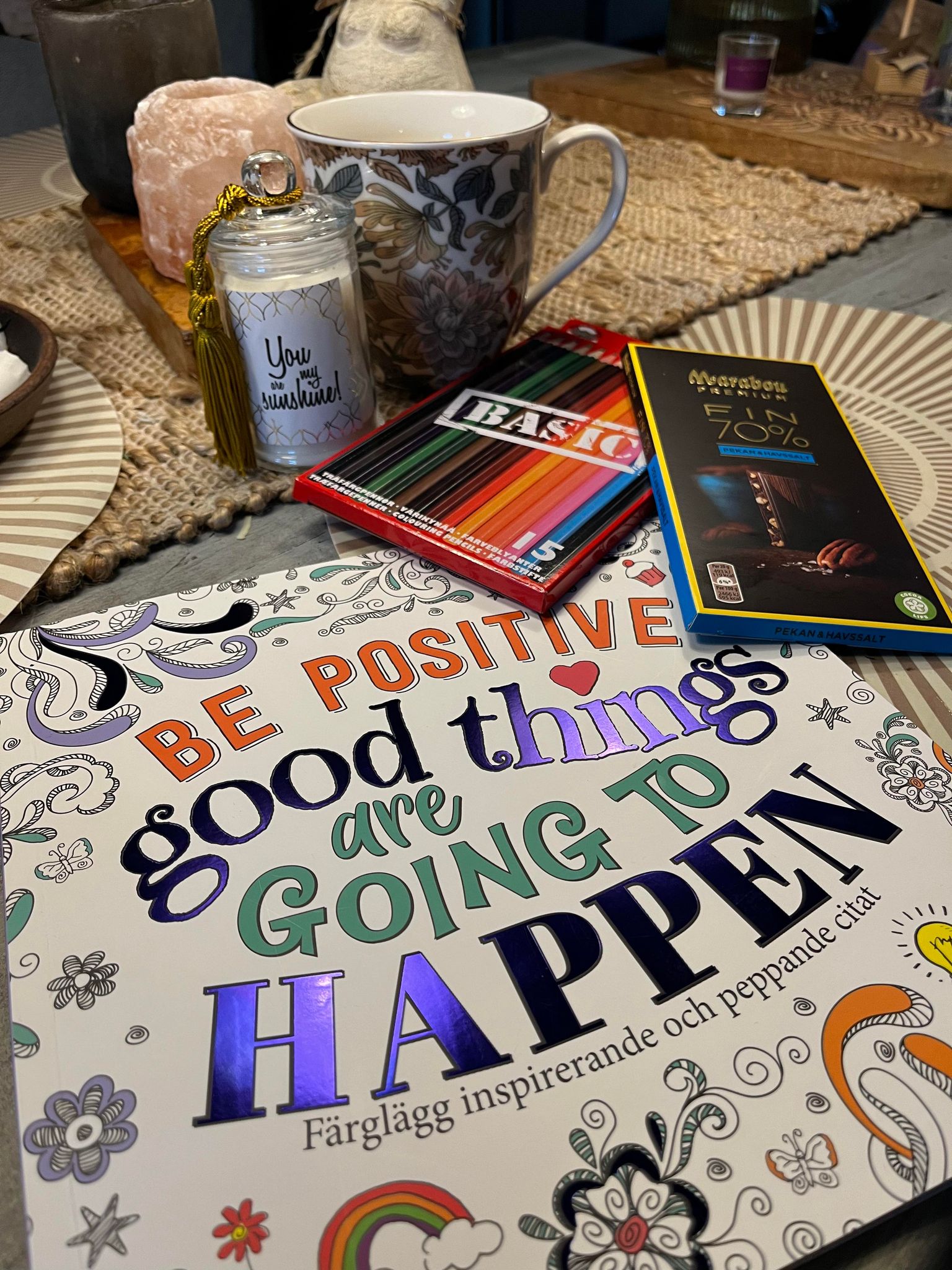 Jag fick en påse med flera fina presenter i. Så glad för dem! Började måla imorse direkt. På kvällen fixade Skåne-Pernilla en god varm dryck med Chaga, mortlade nejlikor, honung, kanel och osötad mandelmjök (och säkert lite annat jag glömt). Supergott och nyttigt! Fått så många tips som jag behöver sortera och ta till mig 🙂
