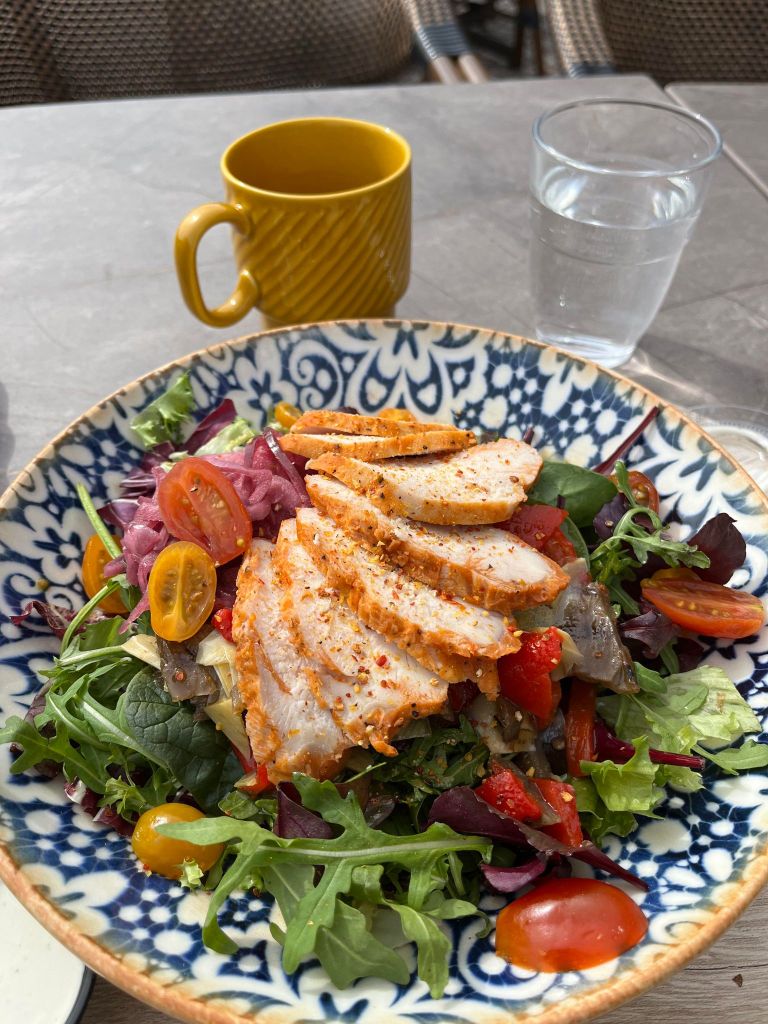 Vi passade på att avsluta våra dygn tillsammans med en god sallad på Ritz uteservering idag. Solen framme, 11 +grader och vi njöt i fulla drag. Hann krama och säga hej till flera vilket var mysigt. Inte ofta jag är på stan och särskilt inte nu. Men som sagt, passade på 🙂 När jag gick mot bilen var dock energin nästan noll vilket gjorde att jag fick hjärtklappning, sus i öronen och ögon som sved. Tur jag inte bor så långt iväg… väl hemma däcka i soffan en stund. Det fick va värt det 😊
