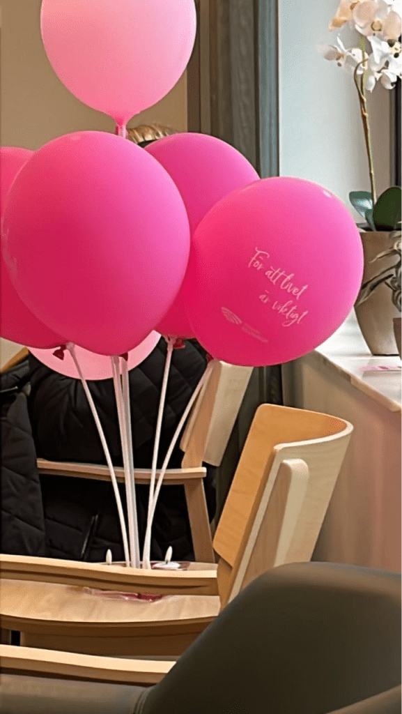 (Jag möttes av ett knippe rosa ballonger inne på bröstmottagningen igår med ännu ett budskap. De finns överallt om vi bara lyfter blicken och ser oss omkring)